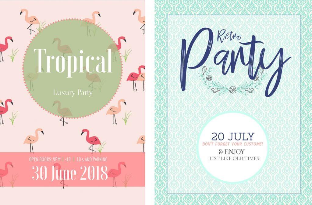 Vous pouvez entre autres ajouter : l’adresse, l’heure de début de soirée, le nom de l’évènement tel qu’il est intitulé sur tel ou tel réseau social, etc. Utilisez des polices élégantes pas trop chargées en détails.