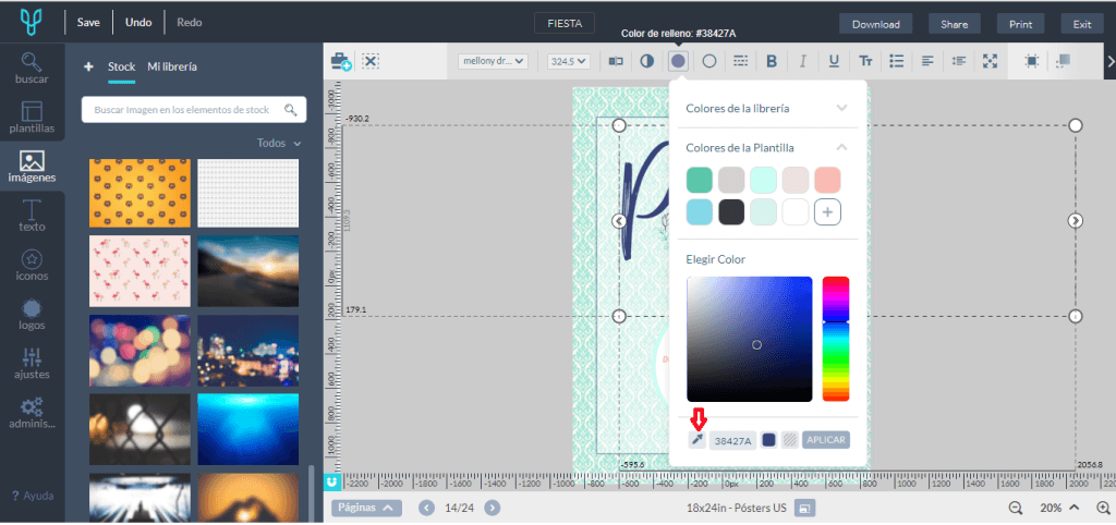 Dans l’éditeur de Desygner, vous pouvez utiliser l’outil pipette afin de reprendre les couleurs du fond pour votre texte.