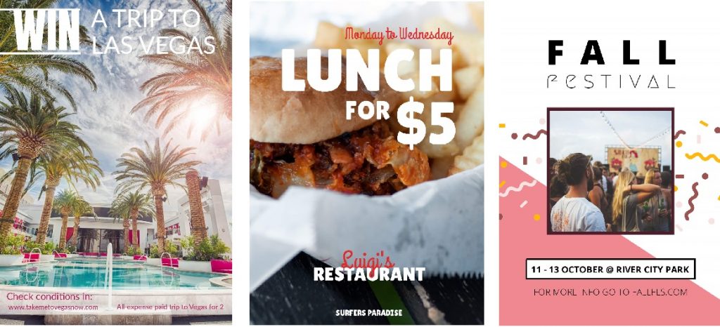 Comme la plupart d’entre nous, nous ne sommes pas très doué en ce qui concerne le design. Mais Desygner vous rend la tâche plus simple ! C’est un outil simple d’utilisation qui permet de personnaliser des modèles et des calques pour créer son propre flyer. Voici quelques exemples ci-dessous :